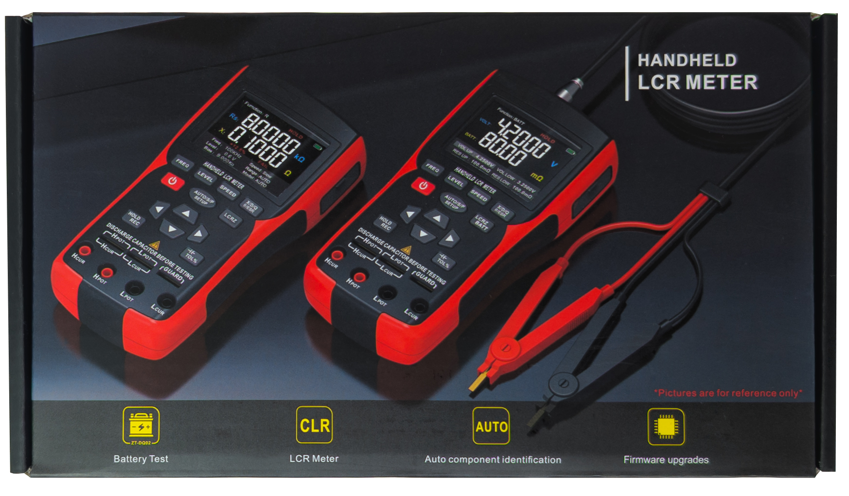 RichMeters RM705B – портативный высокоточный цифровой мостовой LCR мультиметр с функциями измерения индуктивности (L), емкости (C), сопротивления (R), а также прибор измеряет добротность, тангенс угла потерь, угол сдвига фаз, комплексное сопротивление (импеданс) и эквивалентное последовательное сопротивление (ESR). Данная модель подходит для измерения внутреннего сопротивления аккумулятора. Точность измерений – 0.3%. Пять выбираемых тестовых частот: 100 Гц / 120 Гц / 1 кГц / 10 кГц / 100 кГц. Три уровня тестового напряжения: 0.1 В / 0.3 В / 0.6 В. Три уровня скорости измерения: медленно / умеренно / быстро. Измеритель имеет цветной TFT дисплей 2.8" с двумя шкалами, широким углом обзора и разрешением 320х240p. Работает от аккумулятора емкостью 2000 мАч с зарядкой Type-C. Прибор отображает состояния батареи в реальном времени. Подходит для измерения сопротивления резисторов и батарей, емкости конденсаторов и индуктивности дросселей и других катушек индуктивности. В комплекте идут щупы крокодилы и щупы с тонкими длинными наконечниками для работы с SMD-компонентами. Входной порт представляет собой авиационный штекер с максимально допустимым входным напряжением 100 В постоянного тока. Вход переменного напряжения запрещен.