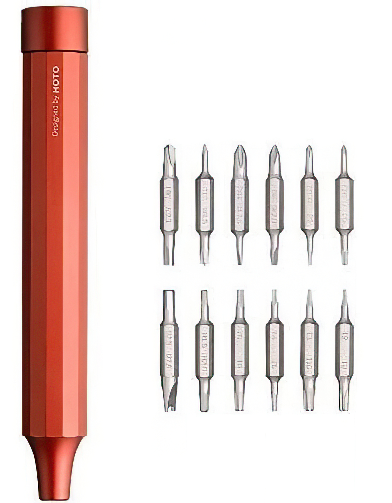 Xiaomi Hoto Precision Screwdriver Kit 24 in 1 Red (QWLSD004) - отвертка, которая поставляется с целым комплектом двусторонних бит, благодаря чему она может стать универсальным инструментом в быту. С ее помощью можно отремонтировать часы, очки и многие другие предметы и гаджеты.