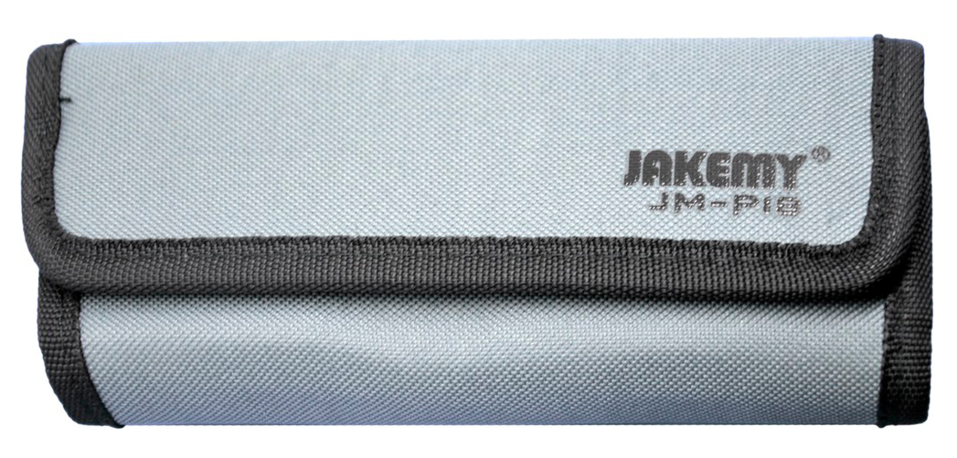 JAKEMY Screwdriver And Tools Kit 61 IN 1 (JM-P18) – набор отверток 61 в 1. В комплект входит рукоятка с магнитным держателем, двухсторонний металлический шпатель, 4 пластиковые лопатки, прямой пинцет, изогнутый пинцет, 5 медиаторов для вскрытия и 48 сменных бит. Головки шлица изготовлены из стали CRV, что делает их прочными и устойчивыми к коррозии. Кейс оснащен углублениями для каждого компонента, благодаря чему мелкие детали не потеряются. Набор подойдет для разборки смартфонов, компьютеров, часов, очков, фотоаппаратов и других устройств. Поставляется в чехле на липучке.