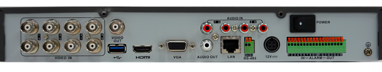 HiWatch DS-H208UA (C) – позволяет подключить до 8 аналоговых камер с поддержкой стандартов CVBS, HD-TVI и AHD с разрешением до 8 Мп и до 2-х сетевых камер (до 16-ти с замещением аналоговых) так же с разрешением до 8 Мп. Компрессия видеопотока с аналоговых HD камер осуществляется видеокодеком H.265 Pro/H.265+/H.265/H.264+/H.264. Поддерживается DualStream и двусторонний звук. Видеорегистратор оборудован разъемом VGA для подключения монитора, а также портом HDMI для обеспечения наилучшего качества отображения. Имеется возможность установки одного жесткого диска. В числе других интерфейсов: разъём питания 12 В, USB 2.0, USB 3.0, RS-485 полудуплекс, тревожные входы/выходы - 8/4, сетевой разъем RJ-45, аудиовходы/аудиовыходы - 4/1. Максимальная потребляемая мощность составляет 20 Вт (без HDD). Рабочие температуры от -10 до +55 градусов, допустимый уровень влажности до 90%.