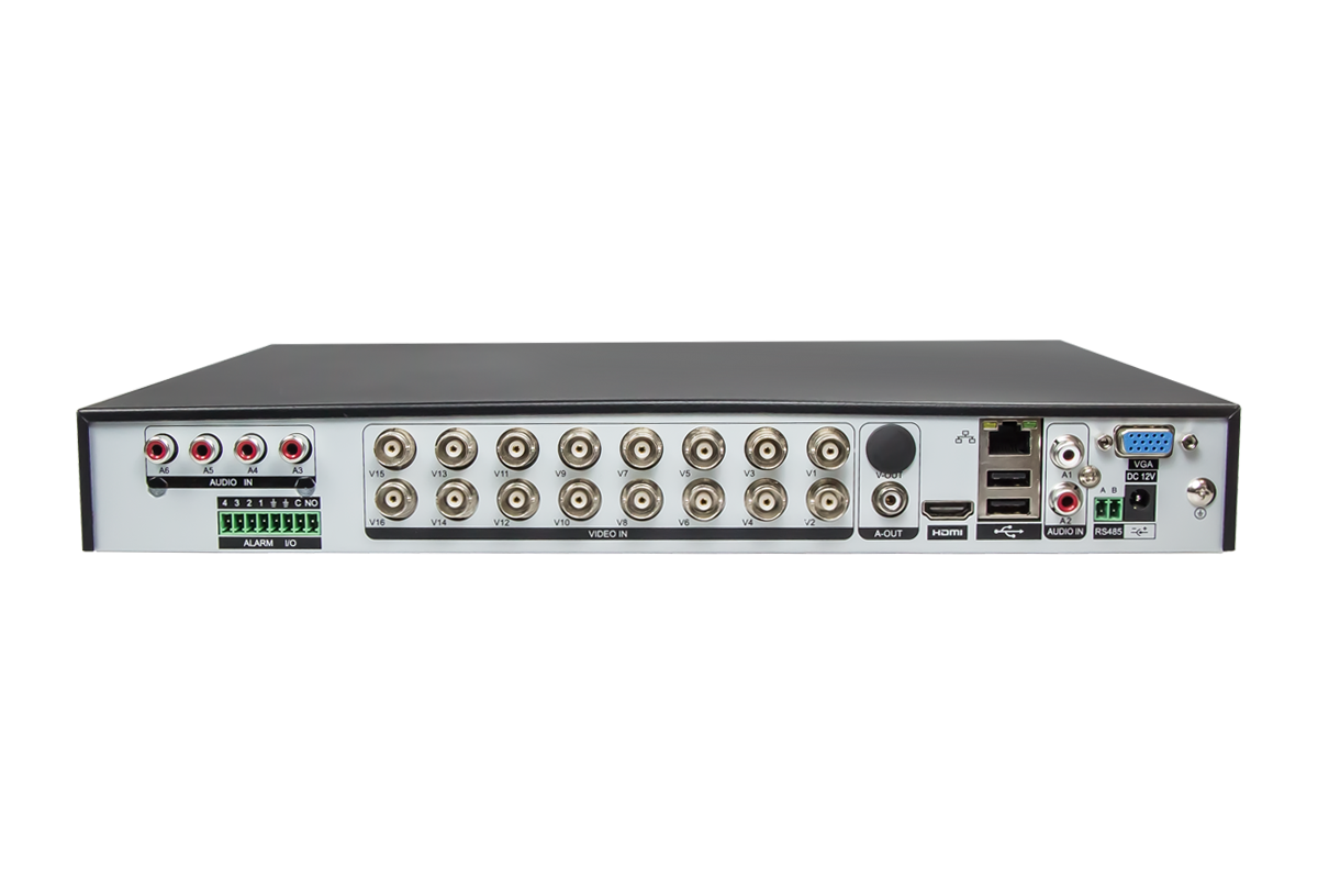 Предусмотрены интерфейсы видеовыходов HDMI, VGA. Также CARCAM AHD7216M имеет 6 аудиовходов для синхронной записи звука и видео и 1 аудиовыход для подключения внешнего динамика.