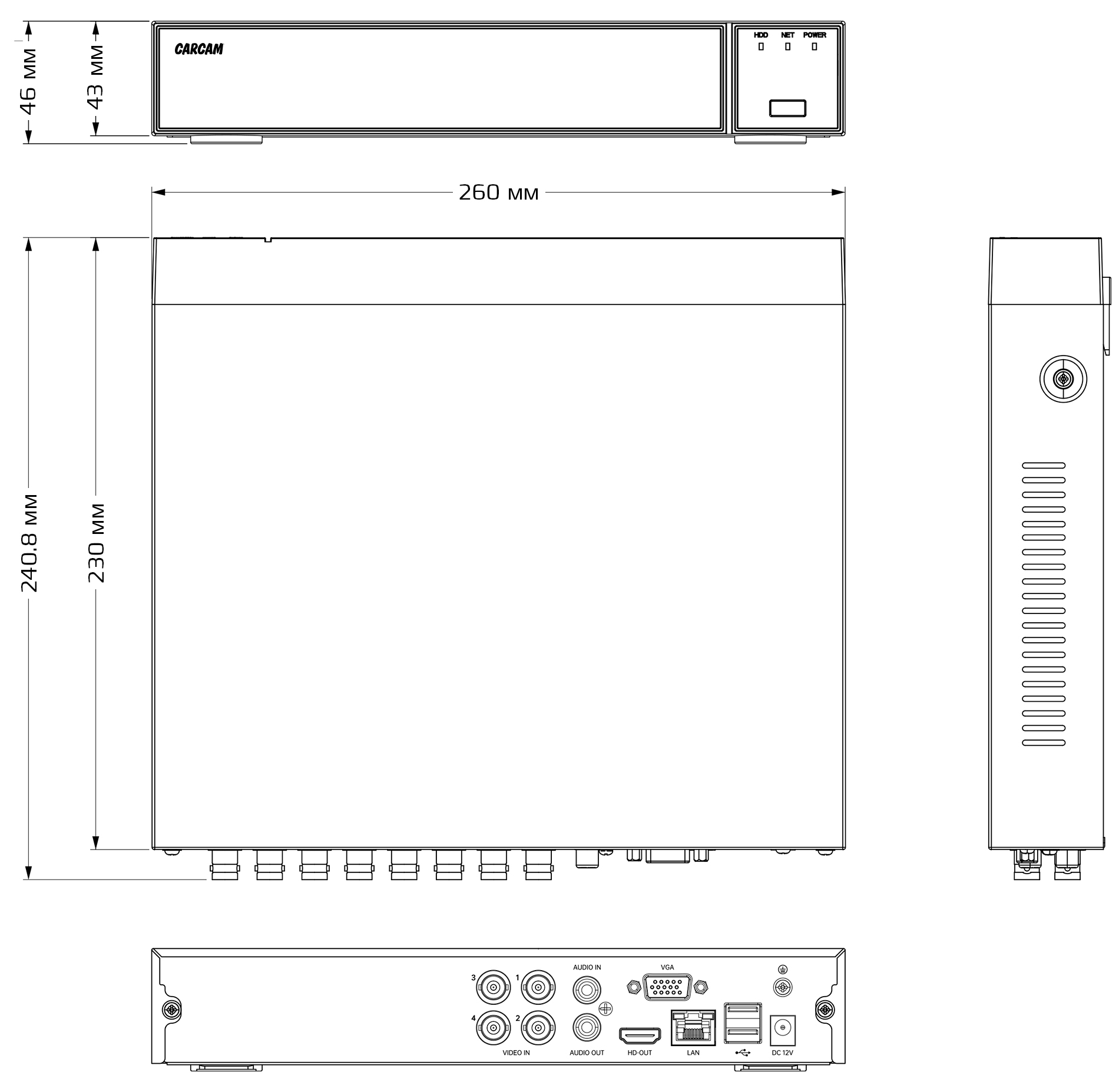 Видеорегистратор оснащен интерфейсами VGA и HDMI. Вы сможете подключить к устройству большинство современных мониторов и телевизоров.