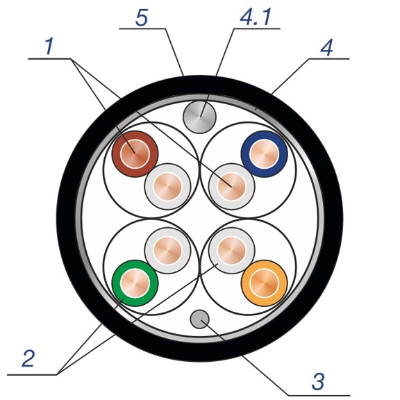 4. Экран – ламинированная алюминиевая фольга, используется при экранированном исполнении