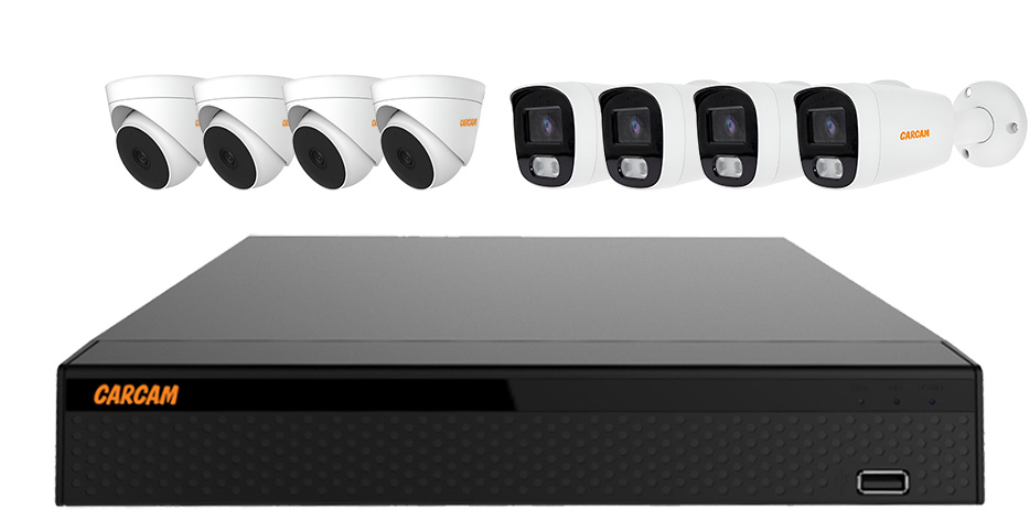 CARCAM 8CH XVR KIT 3008/2075X4/2145X4 - комплект видеонаблюдения состоящий из гибридного 8-ми канального видеорегистратора XVR3008, а также 4 цилиндрических (CARCAM 2MP BULLET HD CAMERA 2145) и 4 купольных (CARCAM 2MP DOME HD CAMERA 2075) камер.