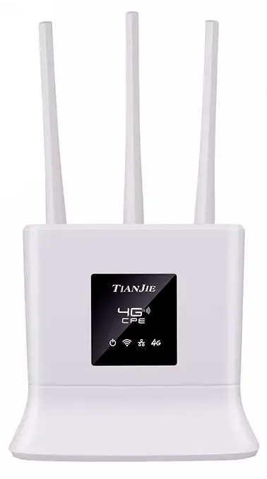 Tianjie 4G Wireless Router (CPE906-3 ) – это умный маршрутизатор WI-FI. Его можно использовать там, где нет возможности для подключения к Интернету. Он обеспечит комфортный и бесперебойный выход в сеть одновременно 10 пользователям. Wifi роутер раздает на расстояние 100-300 метров. Этому способствует 3 внешние антенны. Его скорость передачи данных до 300 Мбит/с.