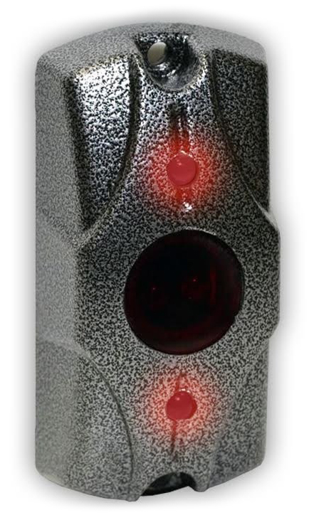 Бесконтактная/сенсорная кнопка выхода ЦИКЛОП ИК (серебряный антик) имеет литой антивандальный алюминиевый корпус современного дизайна, окрашенный порошковой краской. Подсветка из двух светодиодов позволяет быстро найти кнопку даже при отсутствии освещения на площадке перед дверью. Монтируется накладным способом. Работает на принципе регистрации отражённого кодированного инфракрасного оптического сигнала, имеет выходной силовой каскад, построенный по схеме открытый коллектор. Коммутируемое напряжение, не более 26 В. Диапазон срабатывания от 5 до 20 см
