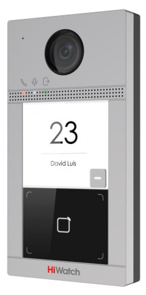 HiWatch VDP-D4212W(B) – вызывная панель для IP-видеодомофонии. Модель обладает расширенным функционалом, есть датчик вскрытия корпуса. Панель комплектуется 2 Мп видеокамерой с ИК-подсветкой и аппаратным WDR, обеспечивающим высокое качество видео при сильной контрастности. Операционная система – Linux. Для повышения качества звука используются технологии подавления эхо и шумов. Соединяется с сетью проводным способом. Питание можно подать по технологии PoE или DC 12 В.