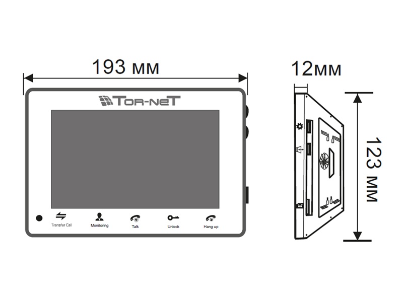 Современный монитор видеодомофона Tornet TR-29M размером 7' с функцией интеркома и возможностью подключения вызывной панели.