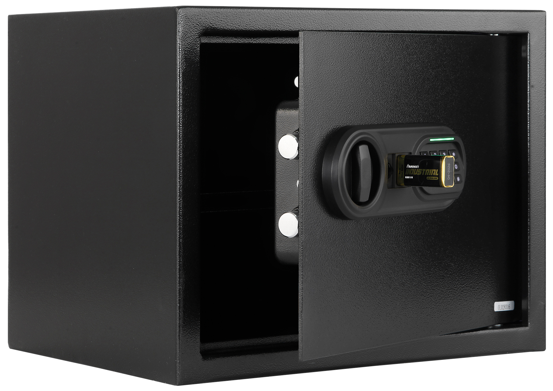 CARCAM Electronic Safe Box (XM30EIS) – это компактный и надёжный электронный сейф, который выполнен в строгом чёрном цвете с текстурированным порошковым покрытием, которое защищает корпус от царапин и придаёт аккуратный внешний вид. Толщина стенок корпуса – 1,5 мм, толщина усиленной двери – 4 мм, что обеспечивает дополнительную защиту содержимого при умеренных попытках взлома. Управление осуществляется через пластиковую клавиатуру с вводом кода длиной от 3 до 8 цифр, при этом предусмотрена механическая разблокировка с помощью ключей блокировки. Для удобства открывания и индикации состояния сейф оснащён внутренней светодиодной подсветкой, позволяющей быстро увидеть содержимое в затемнённом помещении. Внутри расположена одна полка, которая помогает рационально распределить документы и мелкие ценности. Для надёжного крепления предусмотрены четыре готовых отверстия снизу и сзади, крепёж входит в комплект, что позволяет быстро установить сейф на стену или пол. Сейф работает от 4 батареек типа AA и резервного питания от батареи 9 В.
