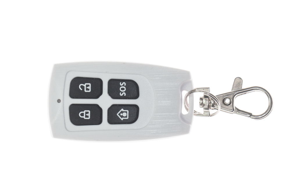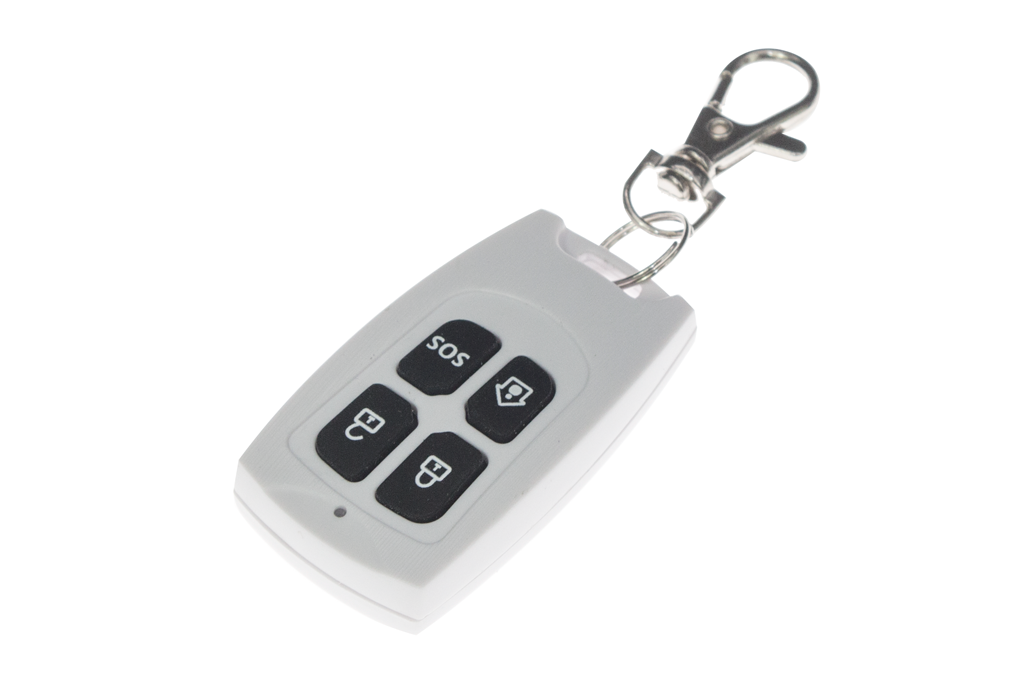 CARCAM RC-01 – пульт дистанционного управления GSM-сигнализацией. Устройство оснащено 4 кнопками, которые позволяют удаленно поставить и снять объект с охраны, а также активировать сирену или переключить сигнализацию в режим «Охрана периметра». Устройство обладает компактными габаритами и удобно крепится на связке ключей при помощи карабина.
